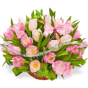 Для моей принцессы - букет из белых и розовых тюльпанов