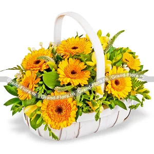 Осенний сюрприз - корзина с желтой хризантемой и альстромерией