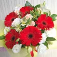 Невероятно-женственный букет создан стать подарком пленительнице вашего сердца. Утончённые белые розы и красные герберы воплотились в цветочную поэму, способную рассказать о ваших самых сокровенных  чувствах!