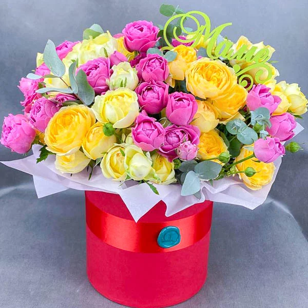 "Подарок маме" шляпная коробка с кустовыми розами и топпером - прекрасный подарок и приятный сюрприз,  который гарантировано не останется без внимания. Такой подарок ко дню рождения, дню матери, к 8 марта или без особого повода, станет прекрасным средством для  выражения Ваших искренних чувств и эмоций. Флористы компании «Grand Flora» создадут эту композицию из свежайших роз и доставят на любой указанный адрес в черте города в течении 2 -3 часов с момента оформления заказа.