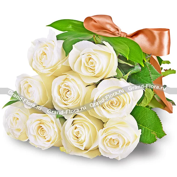 11 роз: роза белая - 11шт., упаковка, лента.