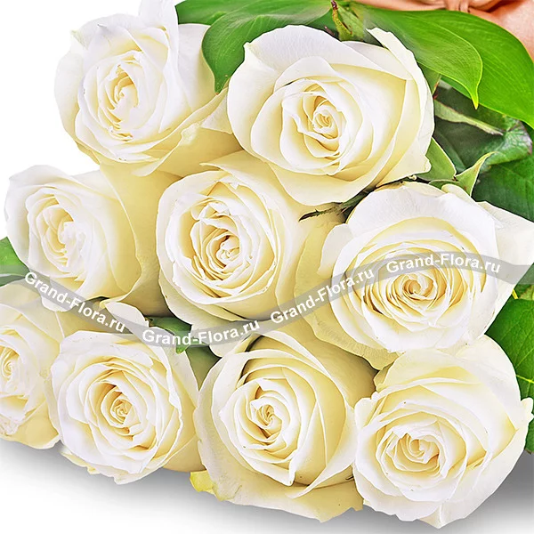 9 роз: роза белая - 9шт., упаковка, лента.